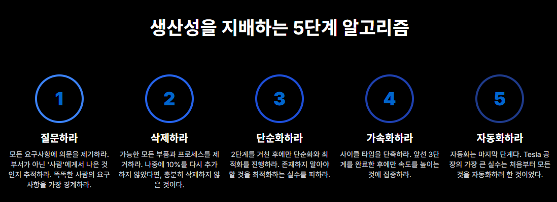 일론 머스크의 생산을 위한 5단계 알고리즘