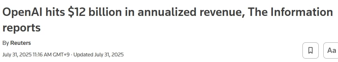 하나의 예로 open AI의 투자확장을 생각 해 보면 좋겠다. 현재 open AI는 25년 기준 연매출 약 43억 달러, 누적 손실 100억달러 이상임에도 엔비디아/브로드컴과 1000억달러 규모의 전략적 투자 파트너십을 체결했다.