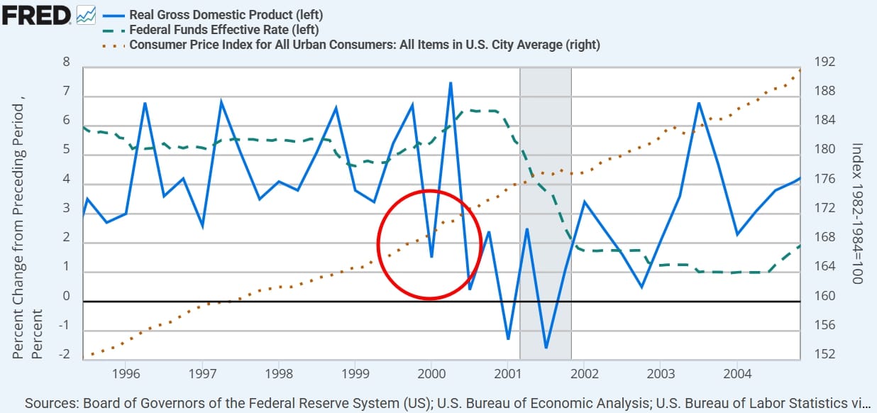 아시아 외환위기와 LTCM 사태 이후, 연준은 긴축을 멈추고 금리를 낮췄다.