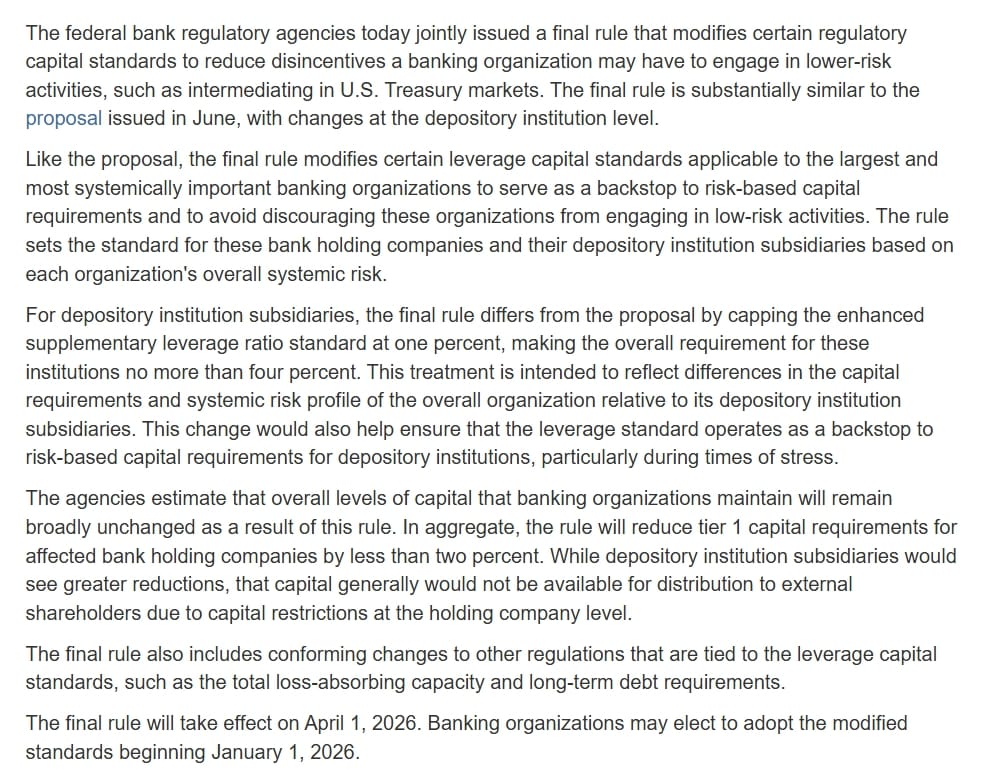 다음은 규제다. 26년부터 적용될 SLR 조정은, 대상 은행이 26년 1월1일부터 조기적용을 선택 할 수 있도록 설계되어 있다.