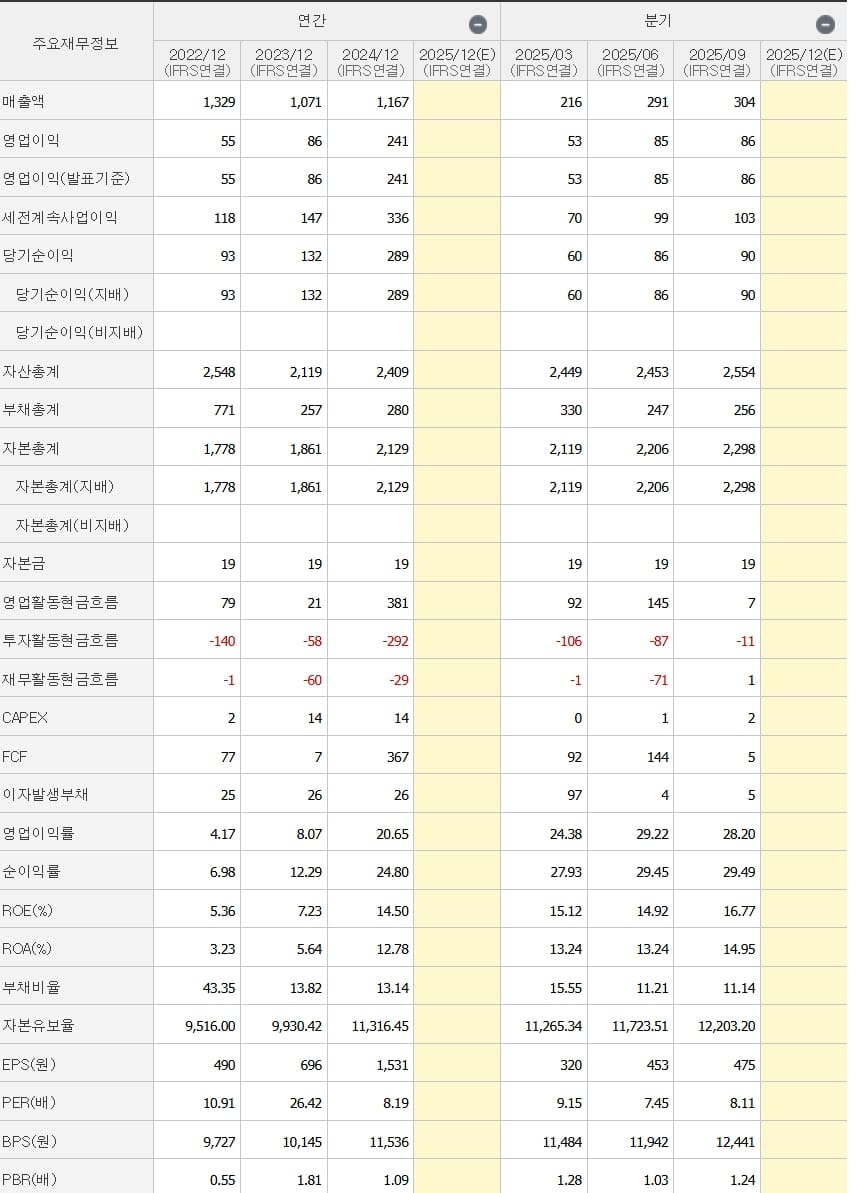 또한, 부채비율이 10%초반, 이자 발생 부채가 거의 없는 점은, 장비주 본연의 구조적 리스크(레버리지 부담등)를 크게 완화 시켜준다. 사이클 변동성이 커질 떄 재무 구조가 강한 기업은 압박이 적고 확장 여지도 크다.